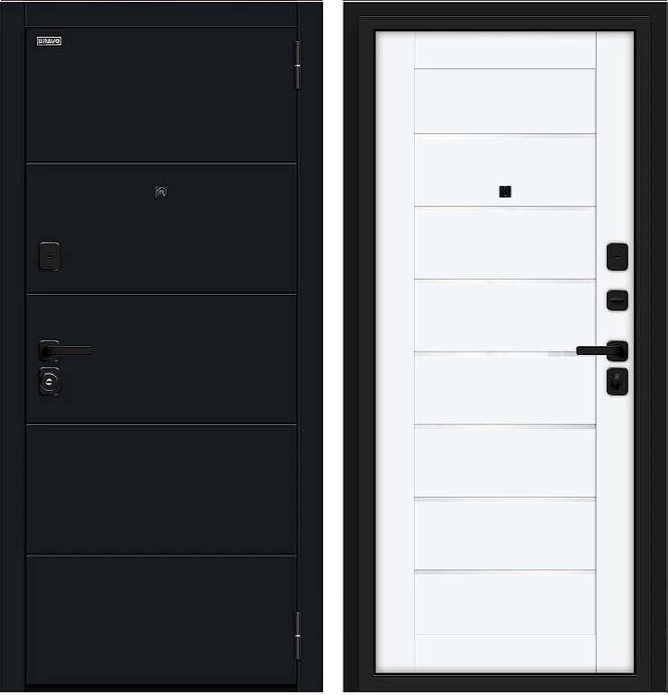 Надежная входная Дверь Браво Прайм/SBlack-Black Shell/White Silk премиум класса по цене 40 131 руб. Большая толщина стали защитит от проникновения в ваш дом, квартиру или коттедж. Используется очень качественная фурнитура: замки, цилиндры, ручки, защелки. Покрытие и отделка двери изготовлено под внимательным контролем производителя. Дверь имеет долгий срок службы и гарантию.